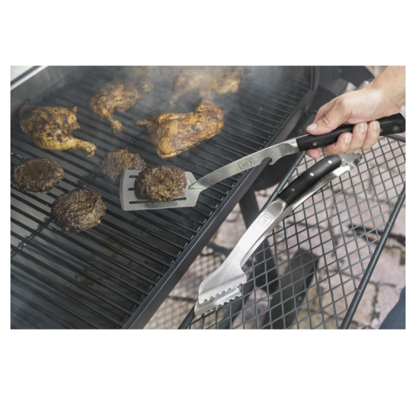Набор состоит из щипцов и лопатки профессиональной серии Blacksmith. В рукоятке лопатки предусмотрена открывашка для бутылок.