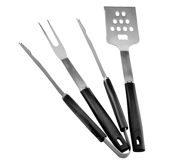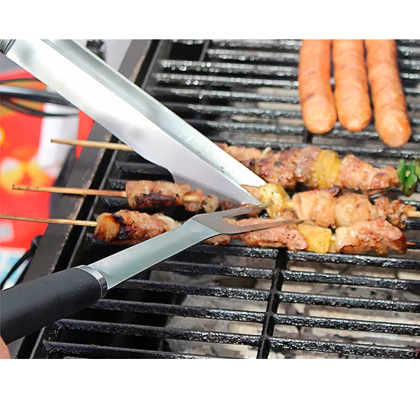 В комплект включены необходимые для приготовления блюд на газовом гриле кухонные приспособления. Щипцы пригодятся для снятия и переворачивания стейков, кусков мяса или овощей без нарушения целостности продуктов. С помощью вилки Вы сможете наколоть горячее филе и переложить его на тарелку. Лопатка с отверстиями для слива лишнего жира и сока позволит сохранить форму продуктов при переворачивании и выкладывании на поднос.