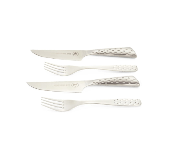 Спонтанно ли Вы решили приготовить барбекю или тщательно планируете романтический ужин — именно детали решают все. Две пары приборов Weber из нержавеющей стали с удобными ручками отлично подойдут для сервировки стола, а острые лезвия ножей с легкостью справятся с нарезкой любого мяса. Пусть на Вашем столе будут только стильные и удобные приборы.