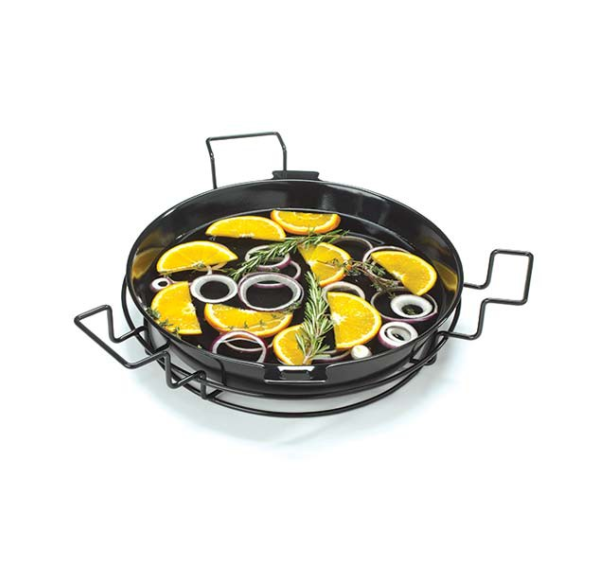 Отсекатель увеличивает эффективность косвенного метода приготовления и позволяет максимально использовать поверхность Вашего гриля. При помощи отсекателя Вы можете приготовить овощное рагу, морепродукты, соусы и многое другое. В комплект входит круглый поддон и решетка с рукоятками, которые крепятся на верхнем кольце гриля. Также, эту решетку можно перевернуть и тем самым увеличить расстояние пищи от угля. Изготовлены из прочной стали с эмалевым покрытием.