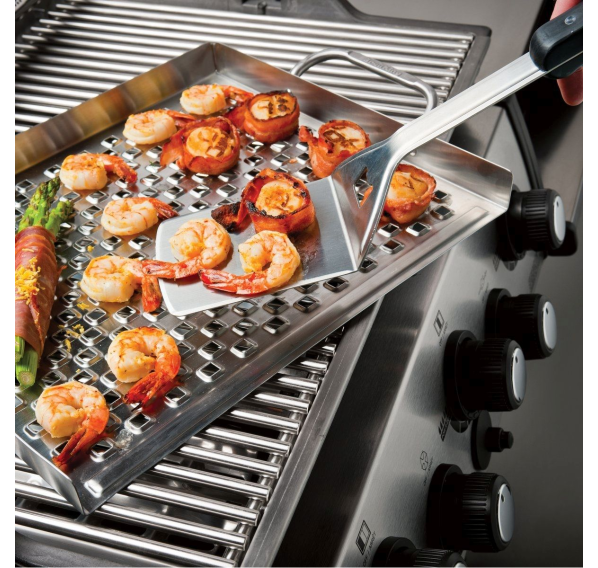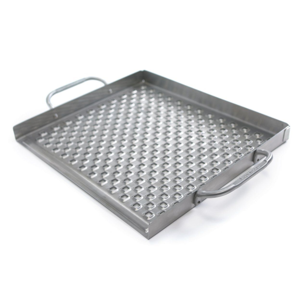 Плоский противень из нержавеющей стали толщиной 1,2 мм. Удобный размер 39х33 см предоставит Вам больше возможностей для приготовления пищи, а приподнятые борты не дадут пище упасть с противня. Большие ручки 10 мм из нержавеющей стали и квадратные отверстия на дне делают противень еще более прочным. Выпуклые отверстия также не дают пище прилипать к поверхности противня. Противень можно мыть в посудомоечной машине.
