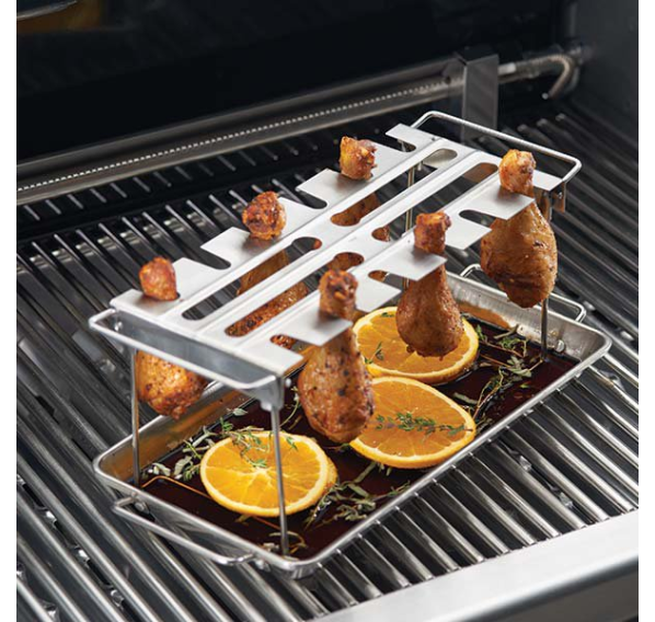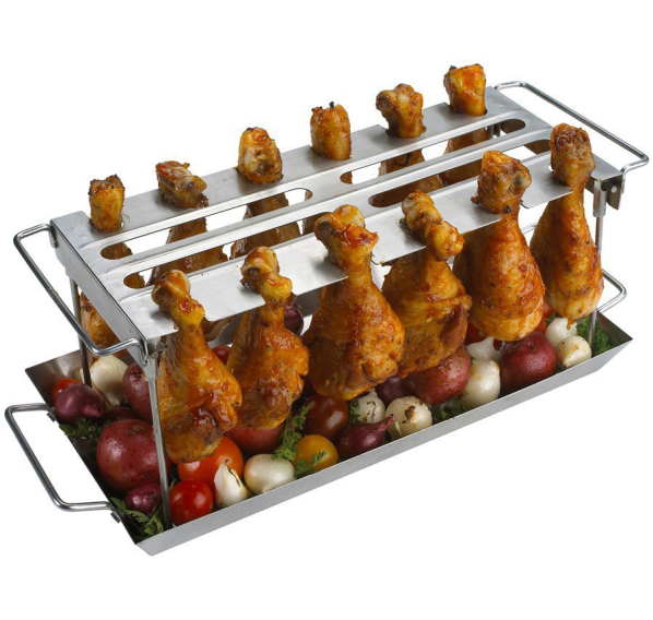 В набор входит поддон из нержавеющей стали и решётка для ножек и крыльев, которая складывается для удобства хранения. Решётка из нержавеющей стали позволяет вешать крылышки, бедрышки, ножки и т. д., вместо того, чтобы класть их на поверхность гриля. Так крылышки не будут прилипать к решёткам. Поддон защищает мясо от подгорания.