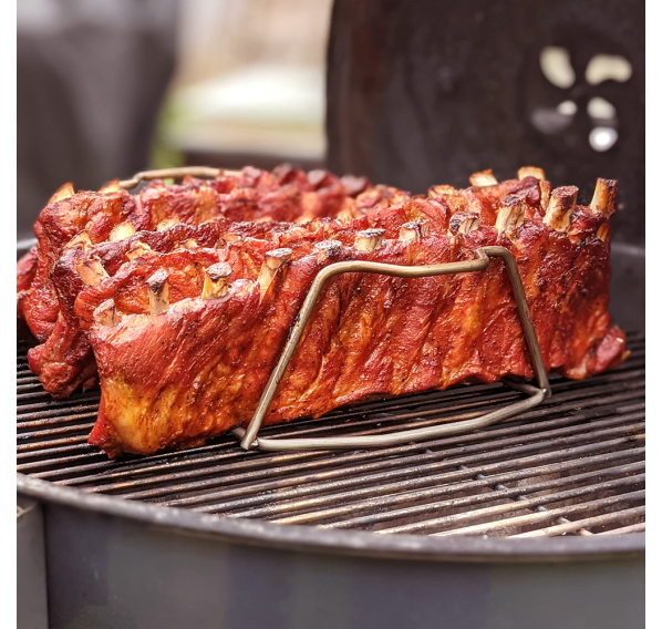 С помощью данной подставки Вы сможете закоптить больше рёбрышек одновременно или подогреть до нежного хруста булочки, пока котлеты для бургеров жарятся на основной решётке. На одной стороне этой подставки можно готовить одновременно до 5 порций рёбрышек, а если её перевернуть — ростбиф или курицу целиком. Толстые прутья из нержавеющей стали и крепкая конструкция делают этот аксессуар долговечным и неприхотливым.