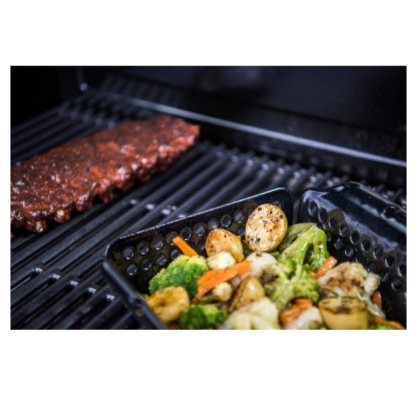 За счет использования данного противеня, пища меньшего размера не будет проваливаться сквозь решетку гриля. Эта керамический противень имеет антипригарное покрытие для легкой очистки и отлично подходит для овощей и жаркого. Удобные боковые ручки.