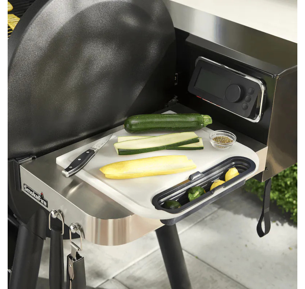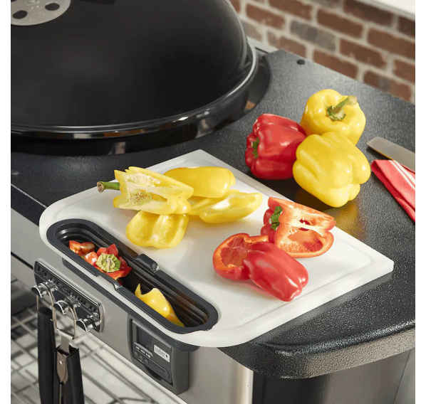 Приправляйте гамбургеры, нарезайте овощи или готовьте стейки для гриля — разделочная доска Weber с поддоном для сбора отходов идеально подходит для приставных столиков и обеспечивает практичную поверхность для приготовления пищи с меньшим беспорядком. Встроенная канавка используется для сбора соков, а съёмный контейнер для сбора позволяет поместить внутрь измельченные ингредиенты или пищевые отходы.