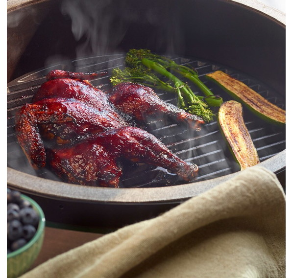 Чугунная решётка придает Вашей пище характерный жареный вкус наряду с характерным алмазным узором на таких продуктах, как овощи, мясо и птица.