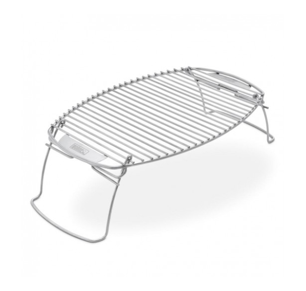 Основные преимущества решётки: большая площадь поверхности, высокие ножки, под которыми можно разместить даже толстые куски мяса, рыбы или птицы, и практичное покрытие. Опоры решётки обеспечивают её надежную фиксацию во время готовки, а после использования складываются для компактного хранения. Решётка изготовлена из хромированной стали.