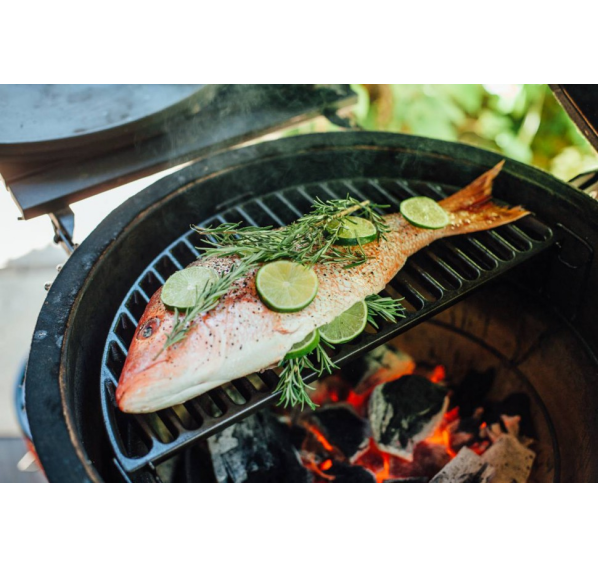 Благодаря превосходному удержанию тепла и долговечной прочности чугунная решётка идеально подходит для любых кусков мяса, а рисунок от решёток останется на приготовленном мясе, придавая ему непревзойдённую текстуру. Половинные решётки для гриля Kamado Joe Classic позволяют одновременно использовать различные методы приготовления блюд.