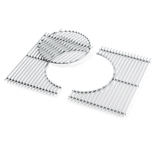 Решётка из нержавеющей стали позволяет использовать на гриле аксессуары системы GBS (Gourmet BBQ System): чугунную сковороду, решётку для стейков, ростер, вок, голландскую жаровню и камень для пиццы.