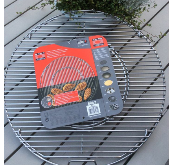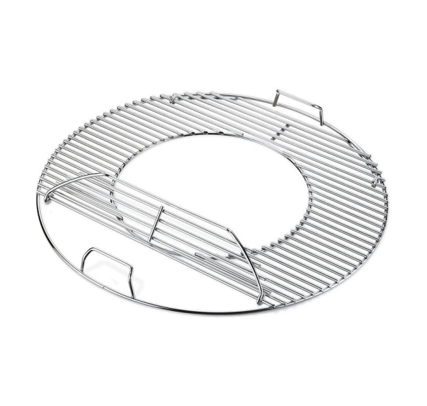 Решётка имеет боковые створки, особенно полезные для длительного приготовления блюд. Благодаря створкам можно подкладывать уголь или щепу для копчения в процессе приготовления, не снимая продукты с решётки. Также решётка оснащена съёмным центральным модулем, который расширяет варианты приготовления и позволяет использовать на гриле все аксессуары системы GBS (Gourmet BBQ System): чугунную сковороду, ростер для птицы, решётку для стейков, вок, голландскую жаровню и камень для пиццы. Эти аксессуары открывают поистине бесконечные возможности приготовления на гриле Weber. Решётка изготовлена из нержавеющей стали.