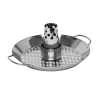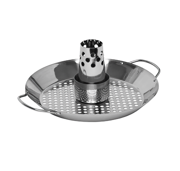 Данная модель подходит для использования на угольном и газовом гриле. Вы сможете одновременно приготовить сочную и нежную курочку и гарнир на компанию из 4-6 человек. Чтобы птица получилась максимально вкусной, в центральную ёмкость налейте пиво и добавьте любимые специи. Установите ростер с курицей в зону непрямого жара и готовьте при температуре +180°С под закрытой крышкой. Для придания блюду дымного аромата рядом с ростером можно установить контейнер с замоченной щепой.