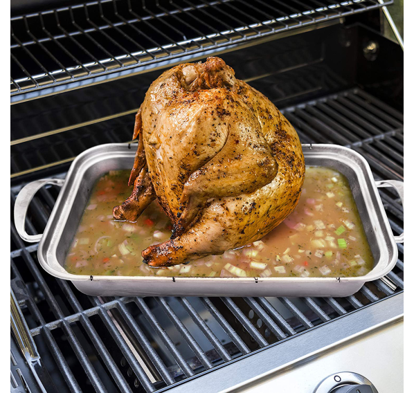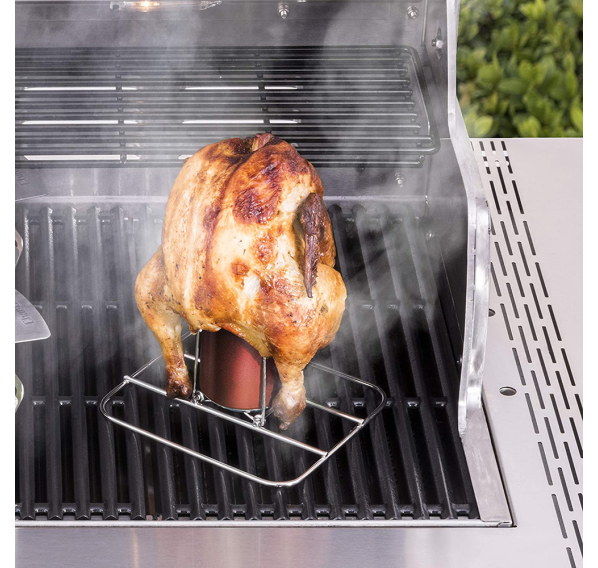Ростер складной для курицы с креплением для ёмкости Grill+ был специально разработан для приготовления барбекю в классическом стиле: курица, пропитанная ароматом напитка. Просто разместите банку на подставку и положите сверху курицу. Через некоторое время на гриле курица приобретет прекрасный аромат. Вы можете комбинировать ростер с поддоном-основой с разделочной доской Grill+ и установить в неё до двух ростеров. При помещении ростера в поддон-основу Вам гарантированно сохранение сочной подливки.