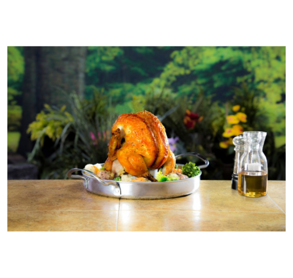 В следующий раз соберетесь пожарить курицу — попробуйте наш вертикальный ростер. Добавьте пиво, колу или любую другую жидкость в съёмную ёмкость и «прокачайте» Вашу курицу новым вкусом. Подставка из нержавеющей стали очень легко чистится.