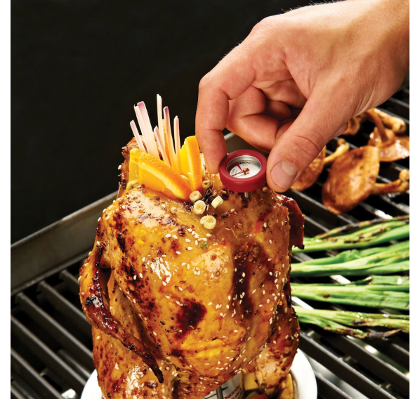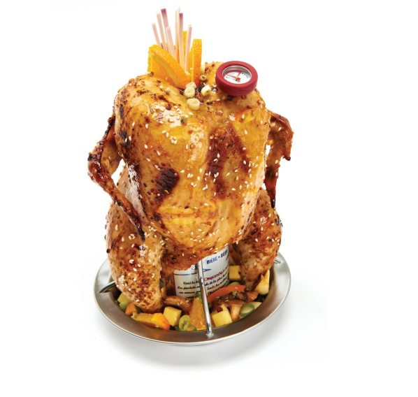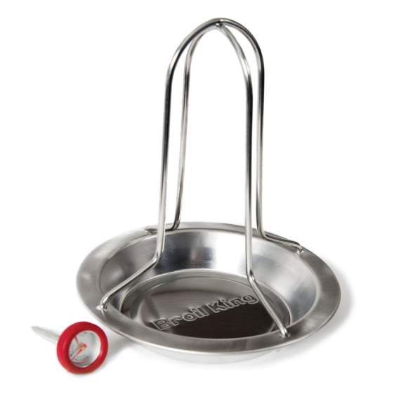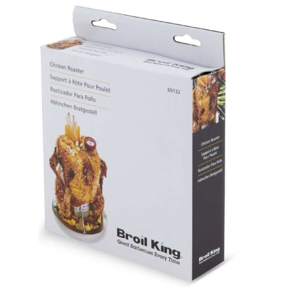 Лучший способ обжарить курицу на своем гриле! В комплект входит одна подставка с подпорками из нержавеющей стали, которая подойдёт к любой курице, а также вместит банку пива. Помимо подпорок, в комплект входит сама подставка из нержавеющей стали с тисненым логотипом Broil King, и термометр для птицы с силиконовой фаской.