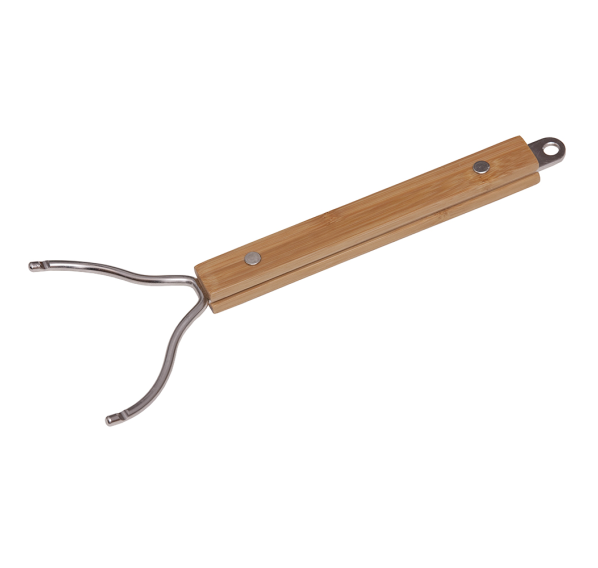 Прочный съёмник для решётки гриля из нержавеющей стали с бамбуковой ручкой — для безопасного и лёгкого подъёма и снятия решётки гриля. Аксессуар подходит для решёток из нержавеющей стали и чугуна.