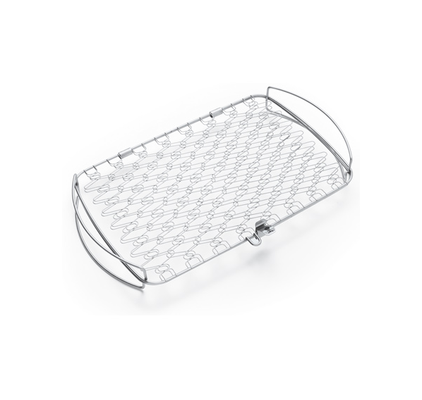 Пружинящая конструкция сетки из нержавеющей стали аккуратно удерживает продукты разной толщины, например, нежное рыбное филе, кесадилью, бекон или фрукты. Она легко и надежно прижимает продукты и позволяет держать их непосредственно над зоной прямого жара. Сетка может использоваться с любыми типами грилей — угольным, газовым или электрическим.