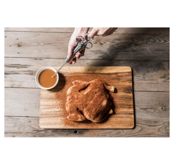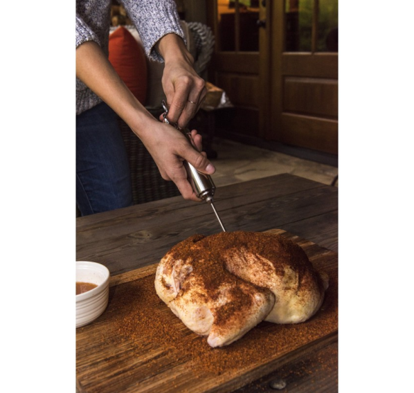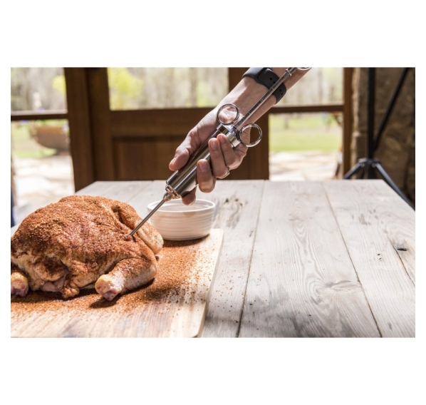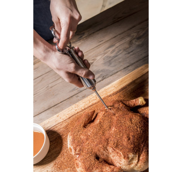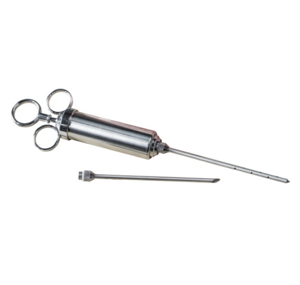 Наполните ваше мясо новым вкусом. Долговечный шприц из нержавеющей стали с объёмом до 60 мл идеально подходит для маринования. В комплект входят две насадки — для жидкого маринада и для маринада или измельченных продуктов (лука, перца и т.п.).