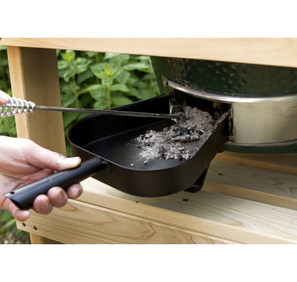 Древесный уголь оставляет после себя золу. Выгребая её кочергой и собирая в совок, вы улучшаете циркуляцию воздуха в Big Green Egg. Поступление кислорода и циркуляция воздуха необходимы для быстрого нагрева EGG до нужной температуры и её удержания. Этот совок входит в заслонку, не оставляя зазоров, что позволяет аккуратно удалять всю золу.
