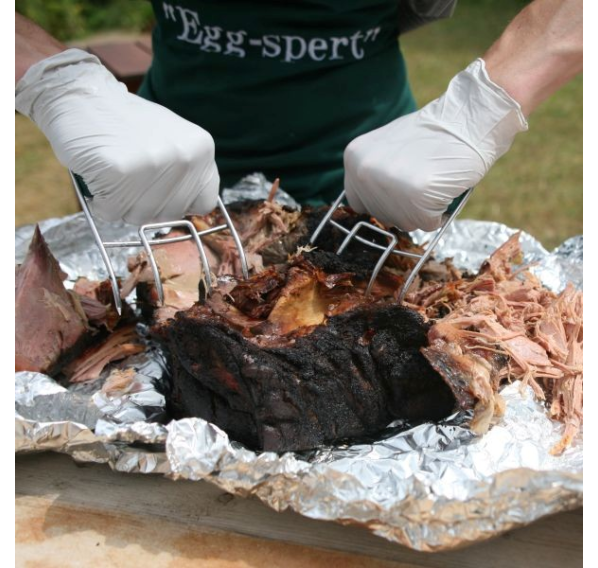 Тартар и карнитас являются популярными блюдами и для их приготовления рекомендуется разрывать/рубить мясо на длинные кусочки вилкой или пальцами. Однако ни один из этих способов не идеален. С помощью «cтального когтя» Big Green Egg, состоящего из двух приспособлений с острыми зубцами, напоминающими по форме когти медведя, легко превратить кусок мяса в тартар. Кроме того, с помощью «стального когтя» крайне удобно брать и переворачивать большие куски мяса.