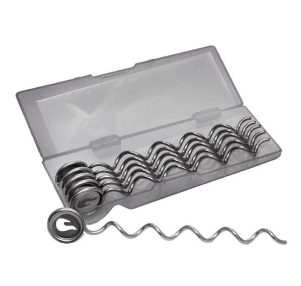 Набор из 6-ти стальных винтовых шпажек для удобной жарки картофеля на гриле, упакованных в кейс для хранения.