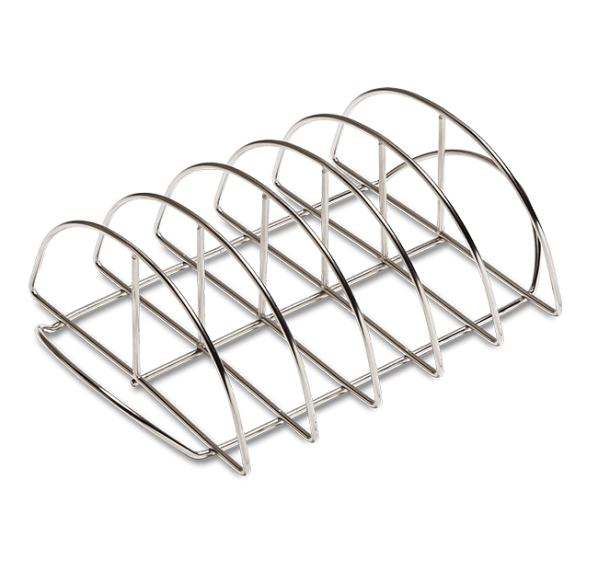 Решётка для рёбрышек оптимизирует рабочую поверхность, позволяя Вам равномерно приготовить несколько рёбрышек одновременно. На решётке также поместятся куриные ножки, отбивные и прочие вкусности. Подставка для приготовления рёбрышек вмещает 5 стоек рёбрышек на своем супер-прочном каркасе из высококачественной нержавеющей стали. Большие боковые ручки выдержат каркас всей подставки и позволят Вам легко и быстро переставить ее из одной части гриля в другую.