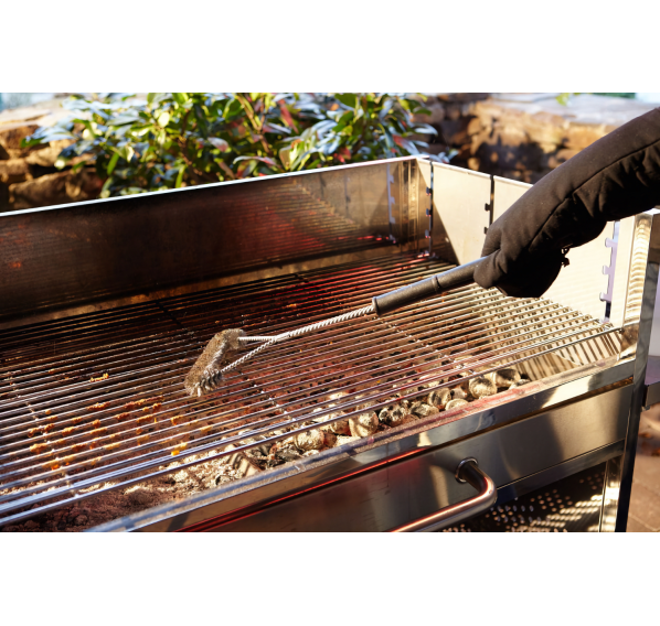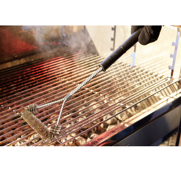 Т-образная щётка для гриля Tarrington House — удобное приспособление, выполненное из нержавеющей стали высокого качества и оснащённое прочной и длинной пластиковой ручкой. С его помощью Вы без труда удалите засохшую пищу и остатки мяса с поверхности решётки. Удобная ручка обеспечивает комфорт при использовании и надёжный хват, а также уменьшает нагрузку на руку во время интенсивной очистки.