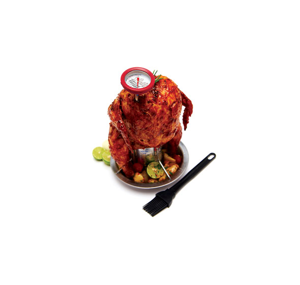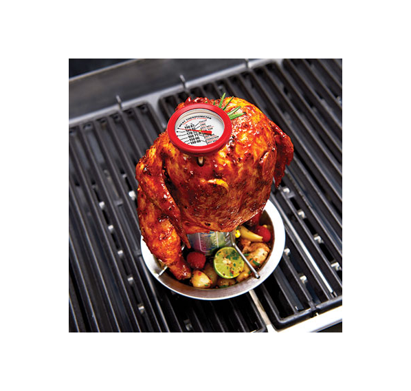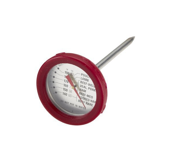 Термометр предназначен для мяса. Отличительная черта этого термометра в том, что он имеет 3 измерительные шкалы по Цельсию, Фаренгейту и степени готовности.