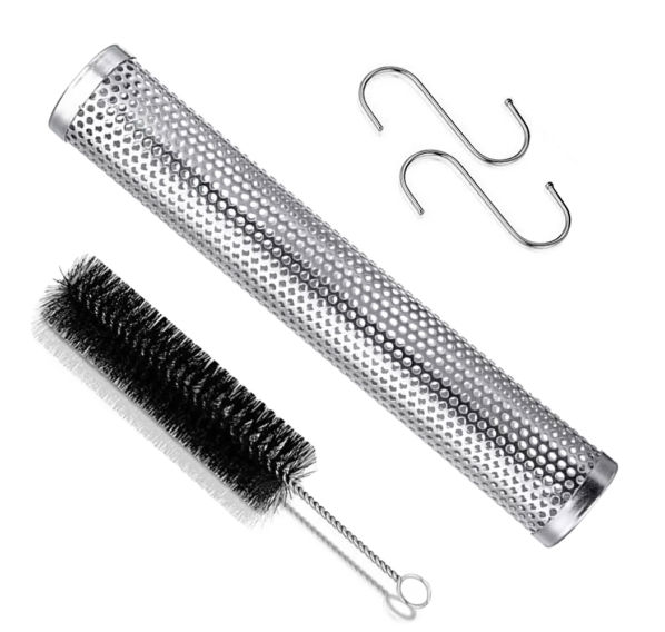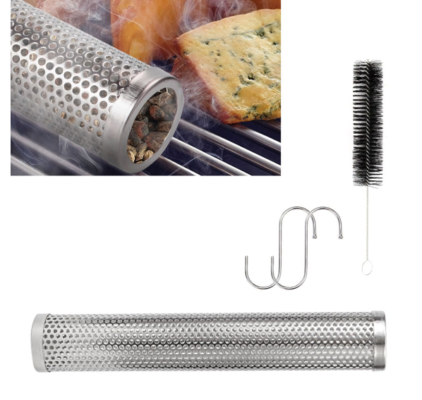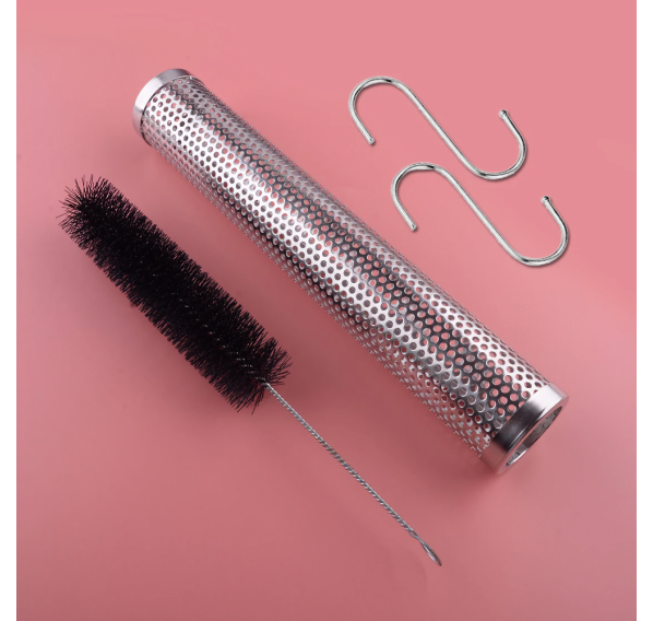 С помощью данной трубки Вы превратите свой гриль в коптильню! Аксессуар выполнен из листа нержавеющей стали с перфорацией и предназначен для древесной щепы. Для копчения в газовом гриле трубку необходимо размещать на решётке сбоку от продукта (по направлению ветра), на угольном — под продуктом, на углях. В комплекте идёт ёршик для очистки после использования и крючки для подвешивания к решётке.