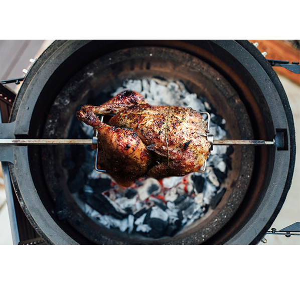 Прочный алюминиевый JoeTisserie превращает Kamado Joe Classic в гриль нового поколения, совмещая вращательные движения вертела с культовым жаропрочным керамическим корпусом Камадо Джо для получения сочного и нежного копченого мяса. С помощью тихого, но мощного мотора инновационный JoeTisserie может поворачивать куриное, говяжье или свиное мясо весом до 23 кг и обладает характерной клиновидной формой, позволяющей полностью опускать крышку гриля для оптимального удержания тепла. Прочный вертел легко установить, и он имеет регулируемые вилки для идеального баланса, а постоянное стабильное вращение сохранит натуральные соки мяса, обеспечивая его равномерное приготовление.