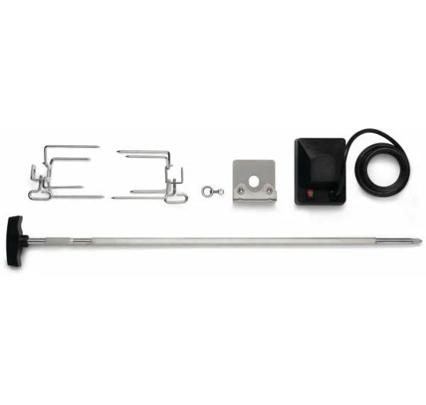 Электрический вертел идеально подходит для запекания крупных кусков мяса или птицы целиком. К вертелу можно приобрести специальные насадки: корзину для запекания овощей или куриных крылышек, корзину для рыбы или насадку с шампурами для приготовления шашлыков.