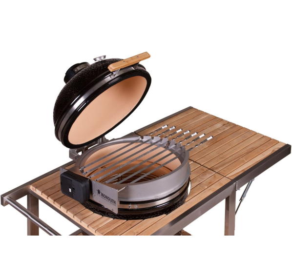 Вертел из нержавеющей стали позволяет запекать птицу целиком и большие куски мяса. Благодаря особой клиновидной форме его можно использовать даже с закрытой крышкой.