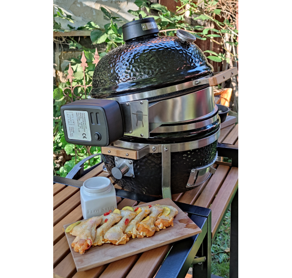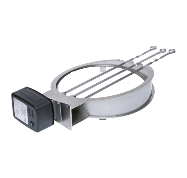 С помощью вертела с электроприводом Monolith, Вы сможете по-настоящему усовершенствовать свои кулинарные навыки. Специальная вставка позволяет готовить на гриле с вращающимся вертелом и закрытой крышкой. Таким образом, Вы сможете полноценно использовать жар, исходящий от Вашего гриля. Вертел оснащён двигателем на батарейках, который гарантирует равномерное подрумянивание. Три шампура, которые входят в комплект, обеспечивают гибкость и разнообразие приготовления. Вы сможете без особых усилий приготовить шашлык, а при необходимости убрать крайние шампуры, чтобы на центральном приготовить курицу-гриль.