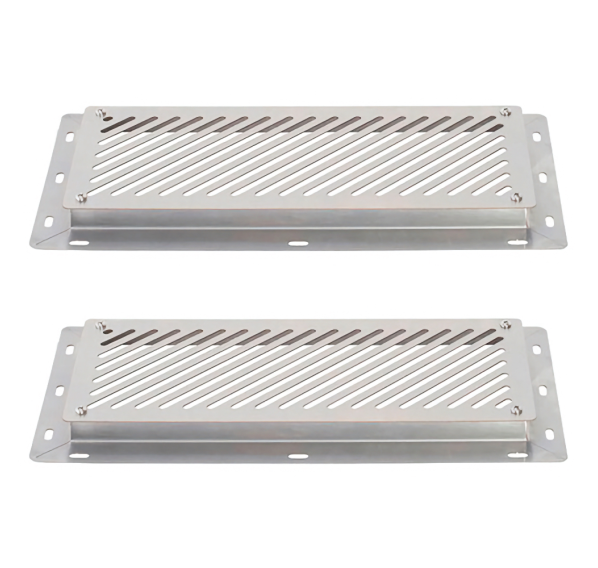 Вставки для вентиляции являются важным элементом уличной кухни. Устанавливаются в нижней части основания кухни. Вставки обеспечивают правильную вентиляцию пространства кухни под столешницей и дополнительную безопасность, когда на кухне установлен газовый гриль и горелка. Вставки выполнены из нержавеющей стали.