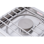 Двойная решётка конфорки Bull сделана из нержавеющей стали толщиной 9 мм. Одна сторона решётки используется для посуды с прямым дном, например, сковороды, кастрюли или сотейника, а вторая со сферическим для казана или вока. Она идеально чистится и никогда не проржавеет. Поэтому на неё распространяется неограниченная пожизненная гарантия.