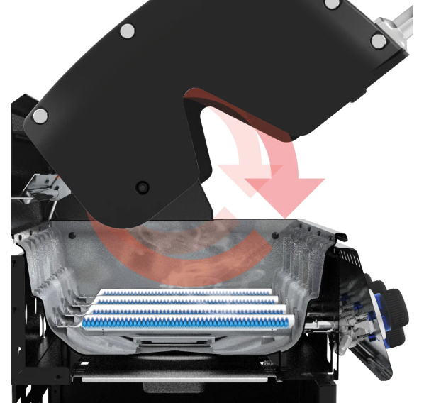 Гриль оснащён удобной системой складных боковых столиков, позволяющих экономить пространство при хранении и транспортировке. Улучшенные колёса обеспечивают мобильность и лёгкость перемещения даже на неровных поверхностях. Синяя подсветка регулировочных элементов упрощает управление устройством ночью или в условиях недостаточной видимости. Система электрического поджига работает от обычной батарейки, обеспечивая быстрый запуск огня без особых усилий. Возможность приготовления как прямым, так и косвенным способом открывает широкие возможности кулинарии, позволяя одновременно готовить разные блюда разной степени прожарки.