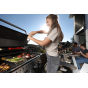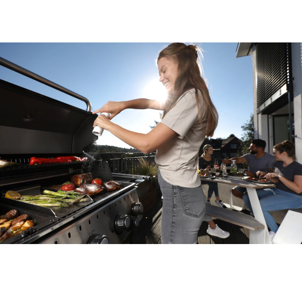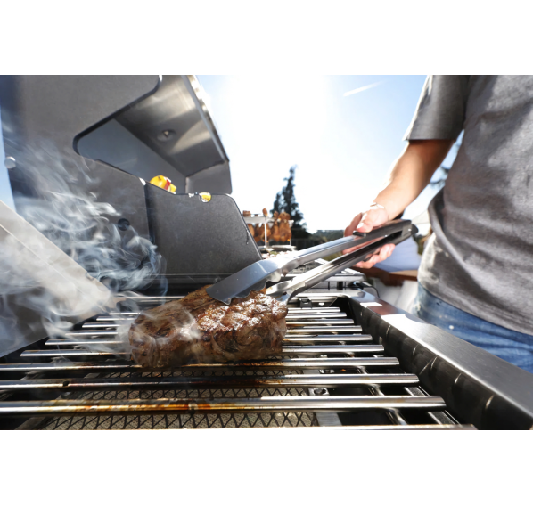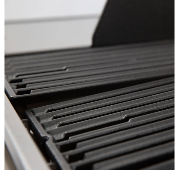 Обновлённый дизайн, складные полки, двухсторонние чугунные решётки, мощная боковая инфракрасная горелка и подсветка ручек управления помогут готовить даже в тёмное время суток.