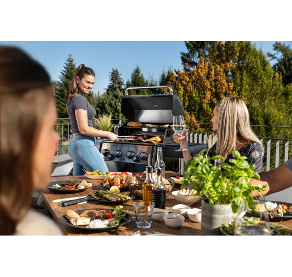 Идеально подходит для молодых семей с балконом или небольшой террасой. Вы приготовите сочное мясо, хрустящие овощи и даже удивите своих гостей десертом на гриле. Гриль Broil King Crown 490 разработан с вниманием к деталям и с использованием многих известных технологических решений Broil King, таких как аромапластины Flav-R-Wave, электроподжиг Sure-Lite и точный термометр Deluxe Accu-Temp. Также гриль оборудован боковой горелкой, дополнительной задней горелкой с вертелом, возможности которого позволяют готовить даже крупную дичь!