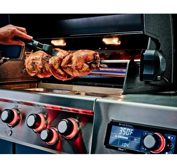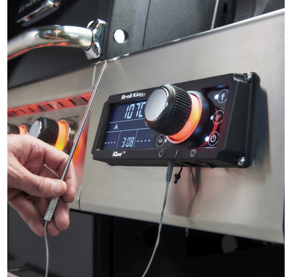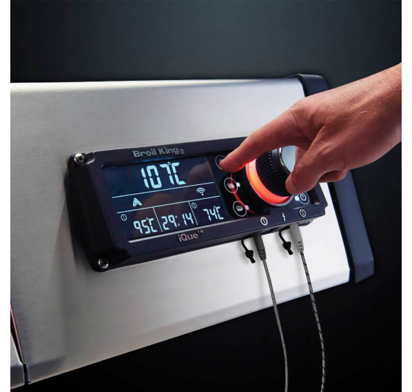 Гриль оборудован инновационными технологиями от Broil King: прочными чугунными двухсторонними решётками Flav-R-Cast, аромапластинами Flav-R-Wave и внутренней подсветкой духовки. Удобная система управления iQue оснащена электронным термометром Accu-Temp и удобной рукояткой управления. Задаёте нужную температуру, а гриль автоматически регулирует подачу газа, поддерживая её постоянной. Благодаря подключению к мобильному приложению Broil King iQue через Wi-Fi или Bluetooth, устройством можно легко управлять прямо с телефона. Рукоятки гриля оснащены функцией Sensi-Touch с эффектной RGB-подсветкой. Этот умный гриль позволяет выбрать автоматический режим приготовления пищи либо вручную контролировать процесс готовки.
