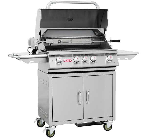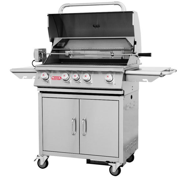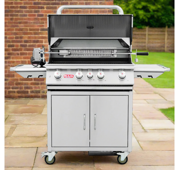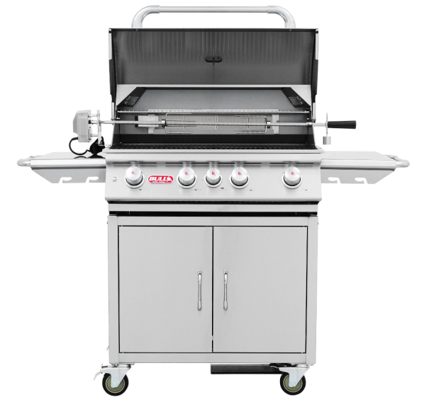 Газовый гриль Bull Angus — самая популярная модель производителя, которая оснащена задней керамической горелкой и четырьмя основными горелками, отлитыми из нержавеющей стали с гарантированным сроком службы не менее 50 лет. Вертел входит в комплектацию. Идеальный гриль для Вашей загородной гриль-кухни уже здесь!