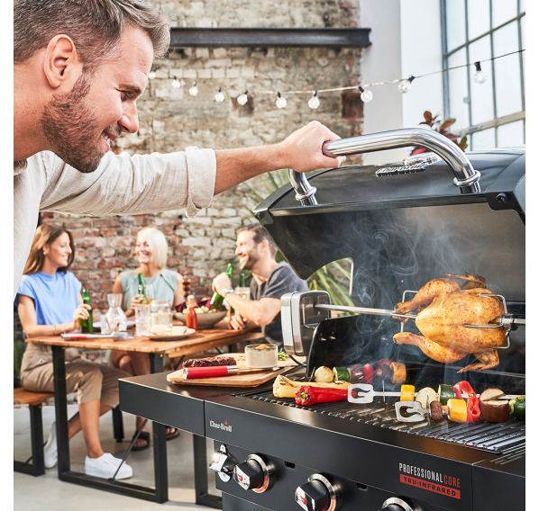 Новейшие газовые грили Char-Broil серии Professional третьего поколения, являются самыми популярными моделями в США, Европе и по всему миру. Газовые грили Professional оснащаются запатентованной инфракрасной пластиной TRU Infrared, которая обеспечивает равномерный жар по всей решётке и предохраняет от вспышек капающего жира в котле. Эта сбалансированная модель среднего размера с тремя основными и дополнительной боковой горелками прекрасно подойдёт для любой компании.