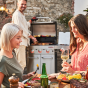 Гриль запускается простым нажатием одной кнопки пьезоэлектрического поджига SureFire и уже через несколько минут готов к работе. Ручки управления имеют эффектную красную LED подсветку.