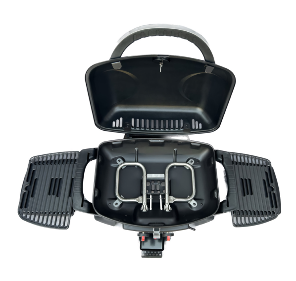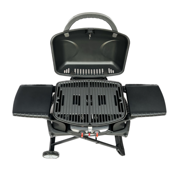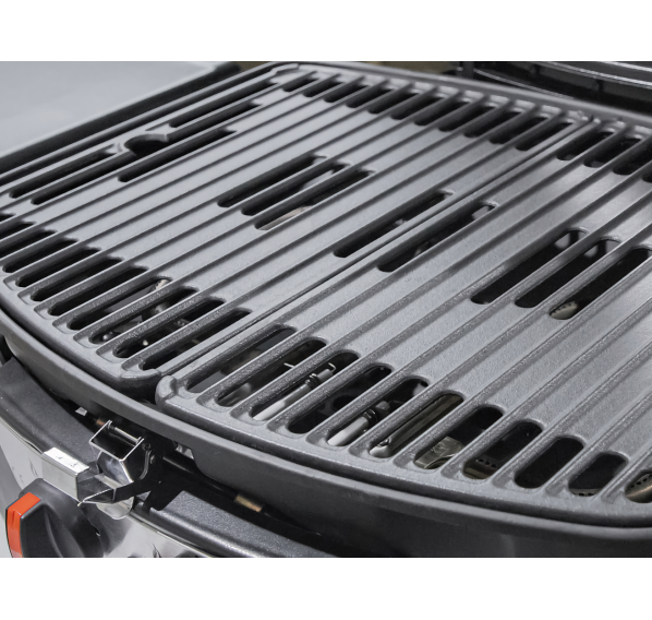 Крышка, котёл и съёмные столики гриля изготовлены из стали, покрытой эмалью. Она безопасна для здоровья и защищает металл от воздействия внешней среды. Ручки гриля выполнены из термопластика, который не нагревается и не боится перепада температуры. Решётка из чугуна долго удерживает тепло, обеспечивает равномерную прожарку и красивый отпечаток на продуктах.
