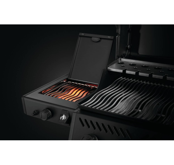 Этот стильный чёрный гриль обладает решётками из нержавеющей стали, которые просты в уходе и вечны в эксплуатации, достаточно поместить их в посудомойку и через время решётки в идеальном состоянии будут готовы к работе. Четыре горелки из нержавеющей стали обеспечивают равномерный нагрев, а с помощью встроенного датчика температуры Вам будет проще следить за температурой внутри гриля. Запечатывайте стейки как в ресторане или готовьте невероятные блюда в сковороде или воке с помощью боковой инфракрасной горелке. Прочные колёса помогают перемещать гриль в нужное место, Вам достаточно сложить одно пристолье и покатить его в новое место кулинарного творчества. Готовьте, творите и наслаждайтесь!