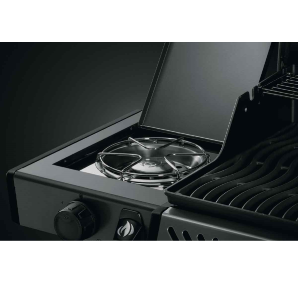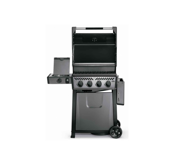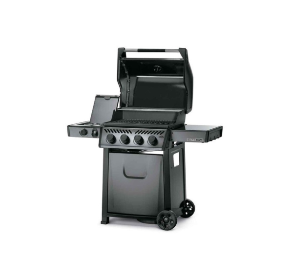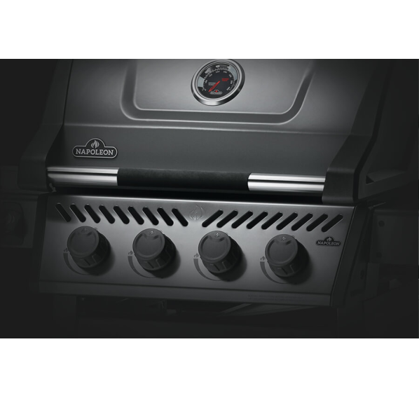 Гриль Napoleon Freestyle 425 SB оснащён четырьмя основными горелками, боковой конфоркой, рабочей поверхностью размером 60x45 см, на которой можно приготовить 20 котлеток для бургера одновременно, и дополнительной решёткой для подогрева. Матовое покрытие крышки защищает гриль от износа, негативных погодных условий и отпечатков пальцев.