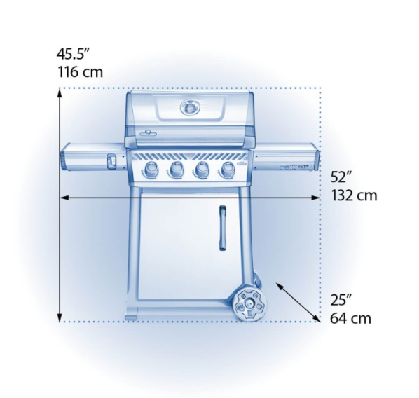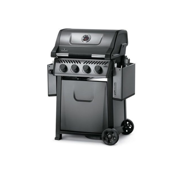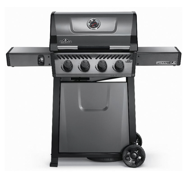 Газовый гриль Napoleon Freestyle 425 – новинка 2022 года. Компактные размеры, стильный графитовый цвет, пластины-испарители с фарфоровым покрытием и ручки управления Soft-Touch – главные особенности гриля Napoleon Freestyle 425. Матовое фарфоровое покрытие крышки гриля обеспечивает защиту от износа, погодных воздействий и отпечатков пальцев. На рабочей поверхности размером 60x45 см можно приготовить 20 котлет для бургера за один раз. Оба боковых столика можно сложить для компактного хранения. Гриль оснащён большими колёсами, что позволит с лёгкостью перемещать его по любым поверхностям.