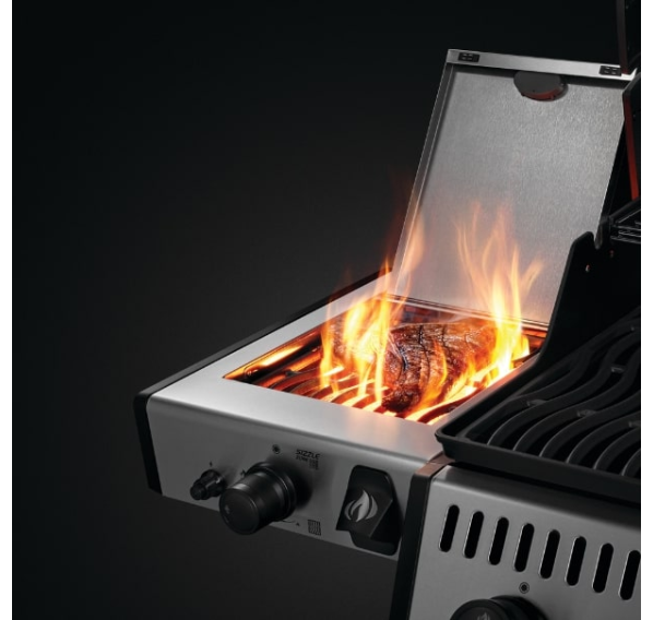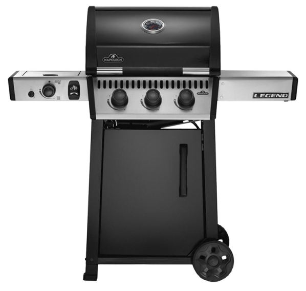 Стильное графитовое покрытие крышки гриля, ручка Soft-Touch, пластины-испарители с фарфоровым покрытием – отличительные особенности газового гриля Napoleon Legend 365 SIB.