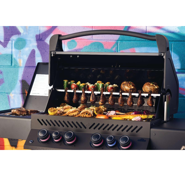 Газовый гриль Napoleon Prestige 500 Phantom — премиальная модель в линейке канадского бренда Napoleon. Гриль сочетает в себе качество и производительность в одном корпусе и отличается стильным дизайном с роскошной матовой чёрной отделкой. Благодаря продуманному функционалу, на гриле Napoleon Prestige 500 Phantom можно одновременно обжарить стейки, готовить бургеры, поджаривать куриные ножки, выпекать и запекать, либо вскипятить воду.