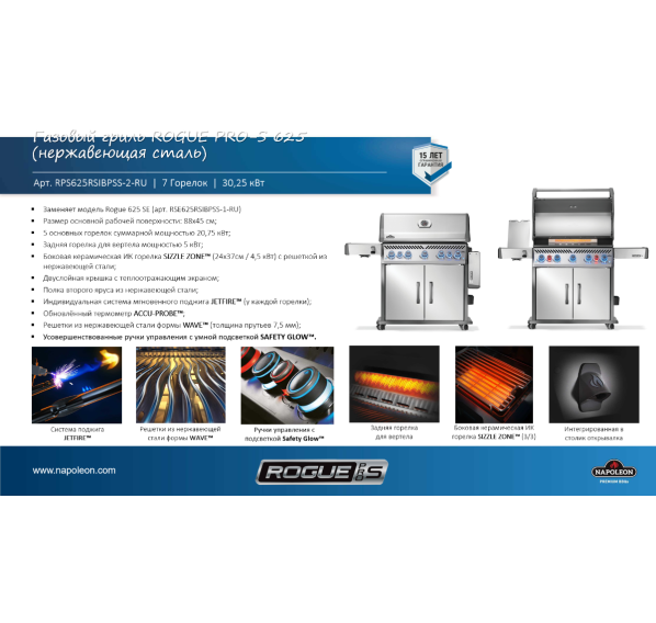 Когда премиальные функции сочетаются с превосходством, на выходе получается газовый гриль Napoleon Rogue PRO-S 625 из нержавеющей стали.