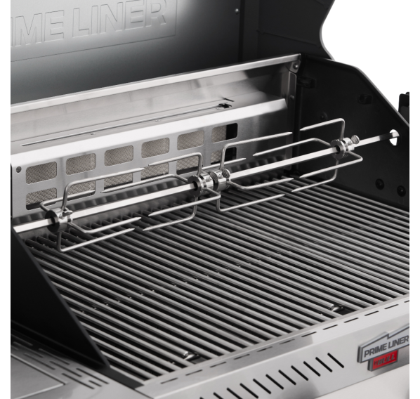 Deluxe комплект помимо газового гриля Primeliner включает в себя: чехол, электрический вертел, Т-образную щётку, лопатку, щипцы и планчу из нержавеющей стали.