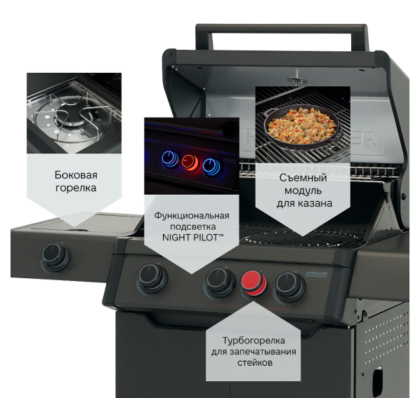 Этот гриль сочетает в себе простоту эксплуатации, высокую производительность и стильный дизайн, превращая каждую трапезу на свежем воздухе в настоящее удовольствие.
